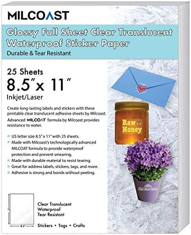 Milcoast Half Sheet 55 x 85 Shipping Labels. Printable Transparent Sticker Paper - 85 X 11 Blank Custom Label Sticker Sheets - 10 Clear Sheets - for Inkjet and Laser Printers - Weatherproof - Tear Resistant- Includes Online Design Software Milcoast Glossy Full Sheet 85 x 11 Adhesive Waterproof Photo Craft Paper - Works with InkjetLaser Printers - for Stickers Labels Scrapbooks. Milcoast Glossy Waterproof Full Sheet Multipurpose Adhesive Sticker Paper - InkjetLaser Printer Compatible - for Arts Crafts Labels Stickers and More 25 Sheets 43 out of 5 stars 61 1499.