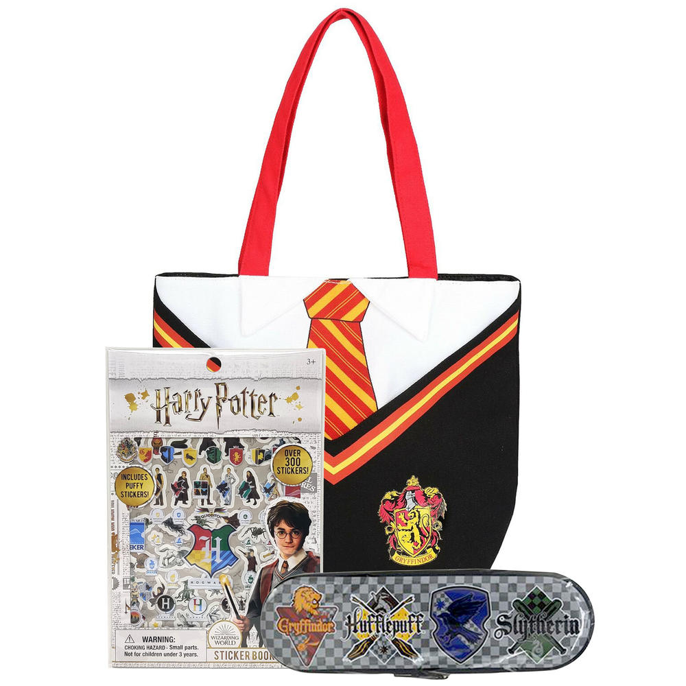 Harry Potter Harry Potter Gryffindor Uniform Tote Bag W Tin Pencil Case Puffy Sticker Set